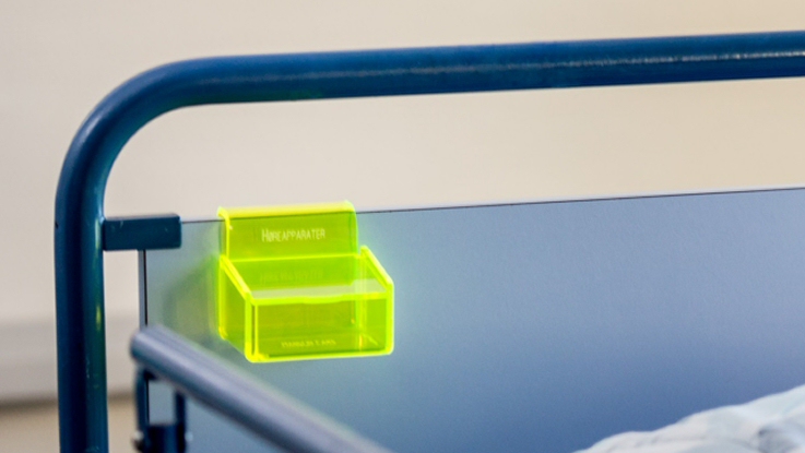 - Det er desværre et velkendt problem, at patienternes små personlige ejendele som ure, smykker, mobiltelefoner, tandproteser og høreapparater ikke kommer med, når sengeliggende patienter flyttes mellem afsnit, eller forsvinder sammen med vasketøjet. Det forsøger vi at gøre noget ved med disse smarte opbevaringsbokse, fortæller projektleder i Idéklinikken Pernille Woller Jensen.